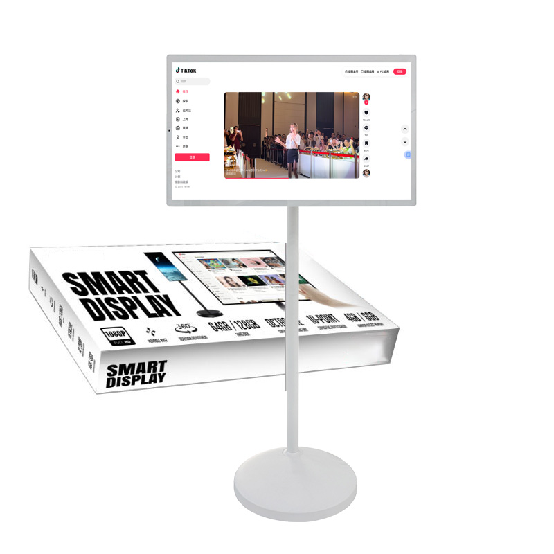 32インチAndroidスマートテレビ回転可能タッチスクリーンポータブルインタラクティブディスプレイ床スタンド白小売店オフィス用
